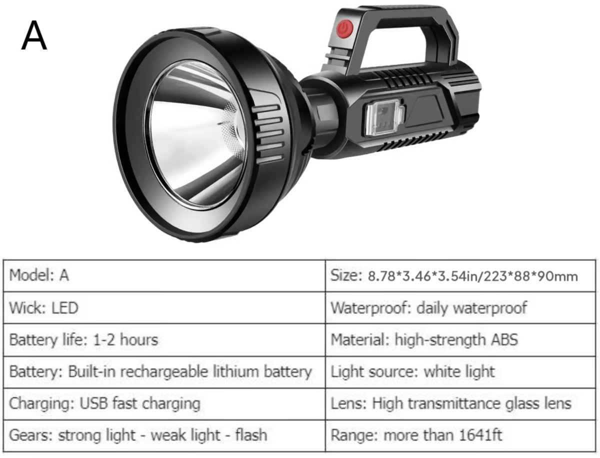 Suitable for family maintenance and outdoor activities. such as camping. hunting. boating. fishing. hiking. exploration. or as emergency lights.