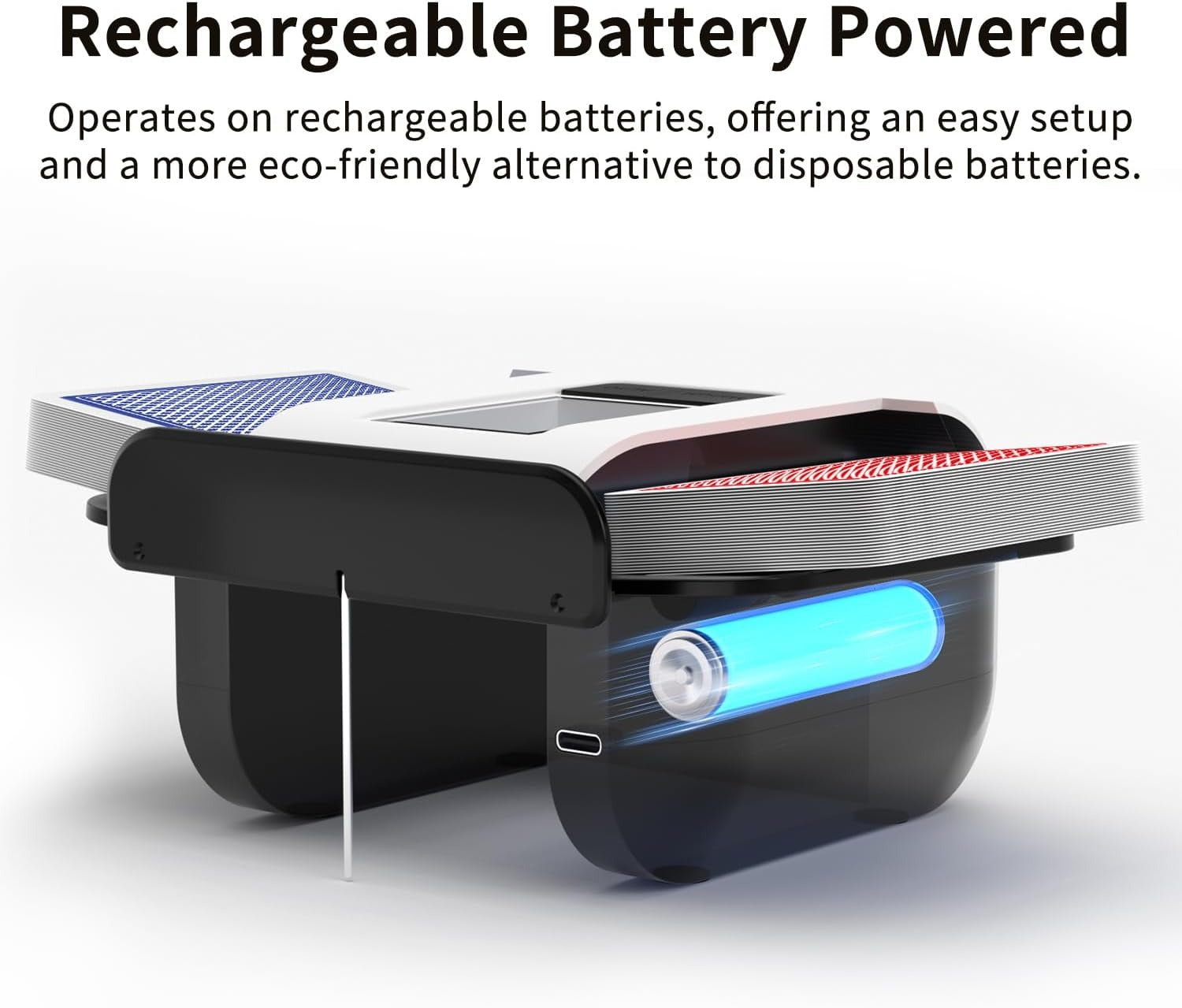 Automatic Card Shuffler with Dual Modes, Rechargeable 1-2 Deck Card Shuffle Machine, Low Noise Operation Card Shuffler for Poker, UNO, Blackjack, Skip-Bo, Phase 10